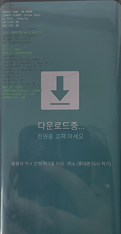 펌웨어 업데이트를 위해 다운로드 모드에 진입한다.